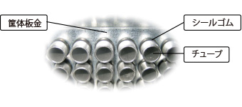 『チューブコア』とは、本製品を構成する弊社独自の放熱ユニットです。多数のチューブ(パイプ)からなるユニットは、盤内外をキッチリと仕切り、油煙・塵埃の侵入を防ぎます。