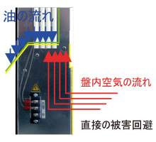 盤収納機器は、シッカリ密閉して油煙・雨水・塵埃から守り、温度上昇を抑える必要があります。